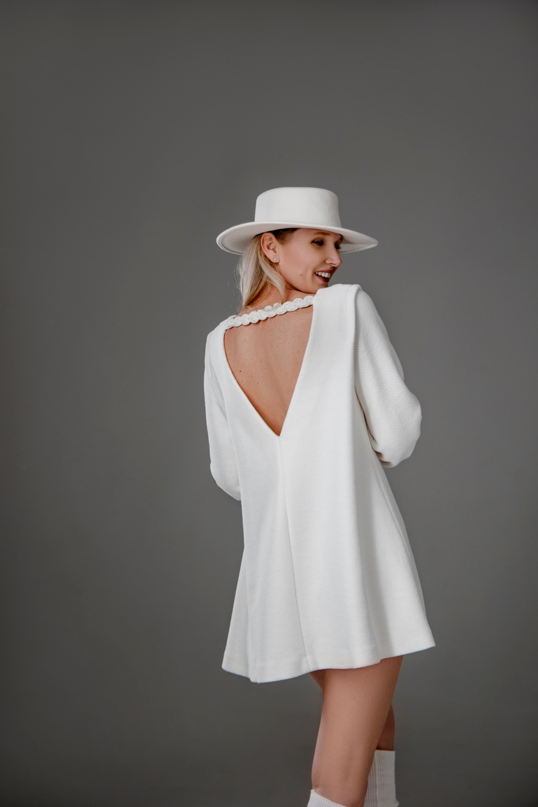 In ancient times, when the world was still learning to exist, there was Zefira, the goddess of lightness and purity. She embodied spiritual balance, carrying the invisible power of nature. Her gown was as delicate as morning mist, its fabric reflecting the first light of dawn, filling the world with tenderness and serenity. The ivory hue of her dress symbolized purity, sincerity, and spiritual harmony, while the natural knit embraced her without restricting movement, gifting freedom to the soul. This dress became the symbol of femininity and strength, merging heaven and earth in a single moment.