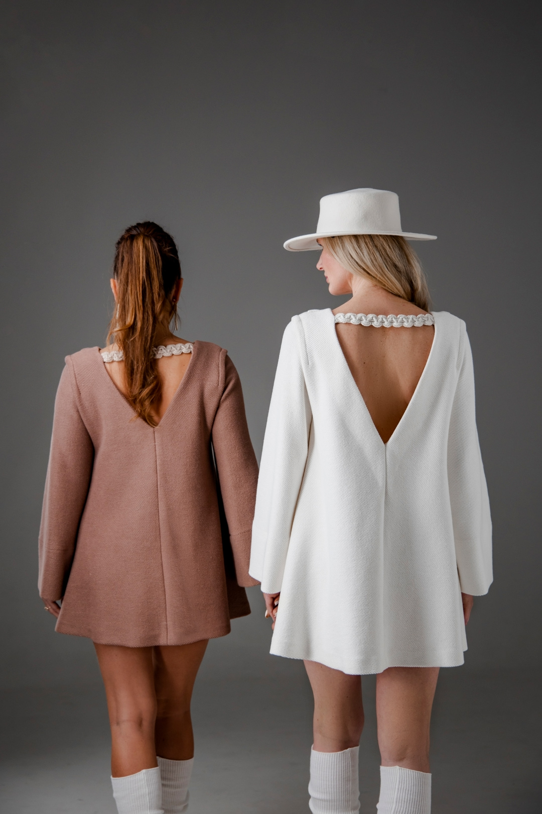 Short Dress Zefira – Handcrafted Cotton Dress in Off-White & Brown with Intricate Macramé, Inspired by Air Element by Oyi Boho